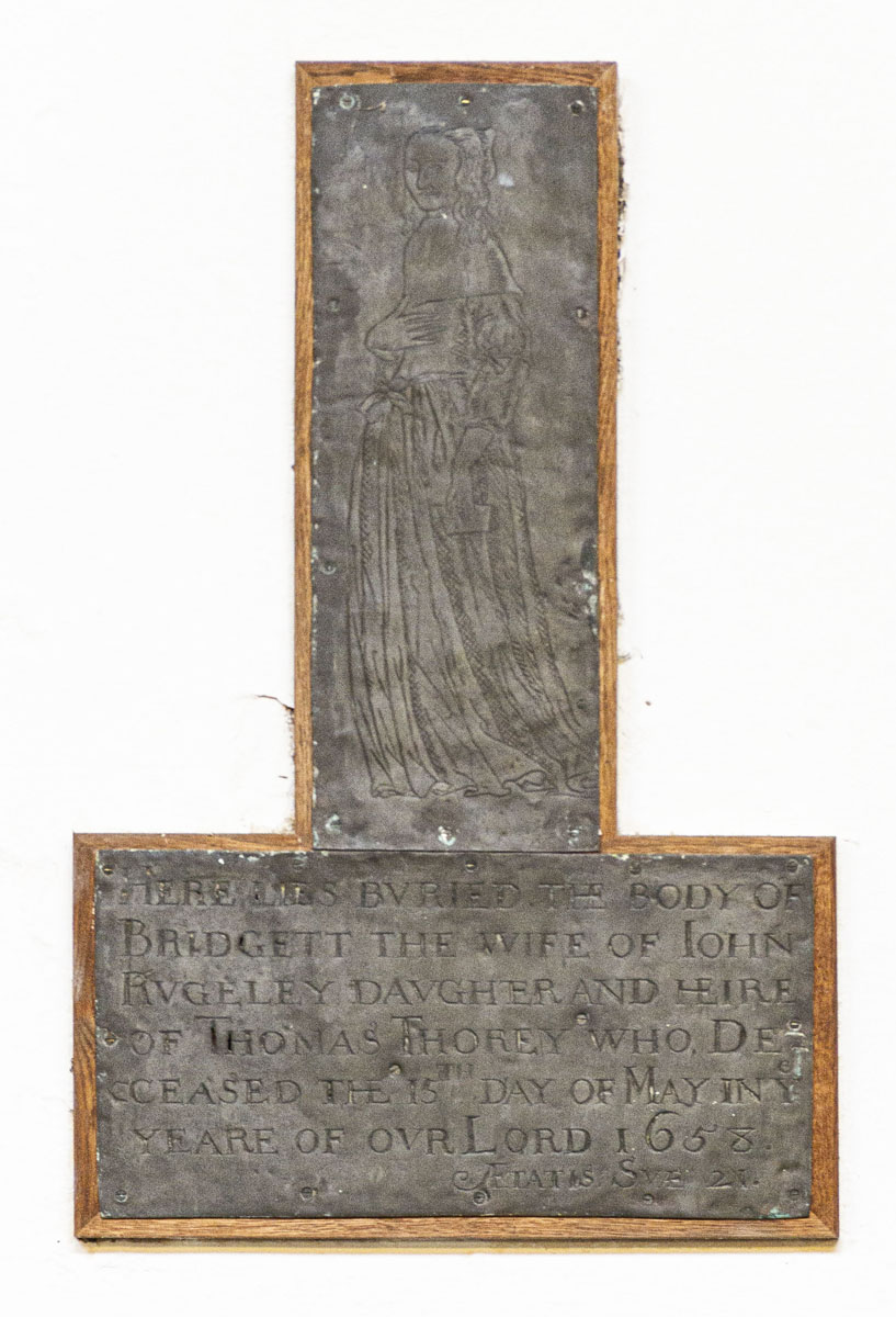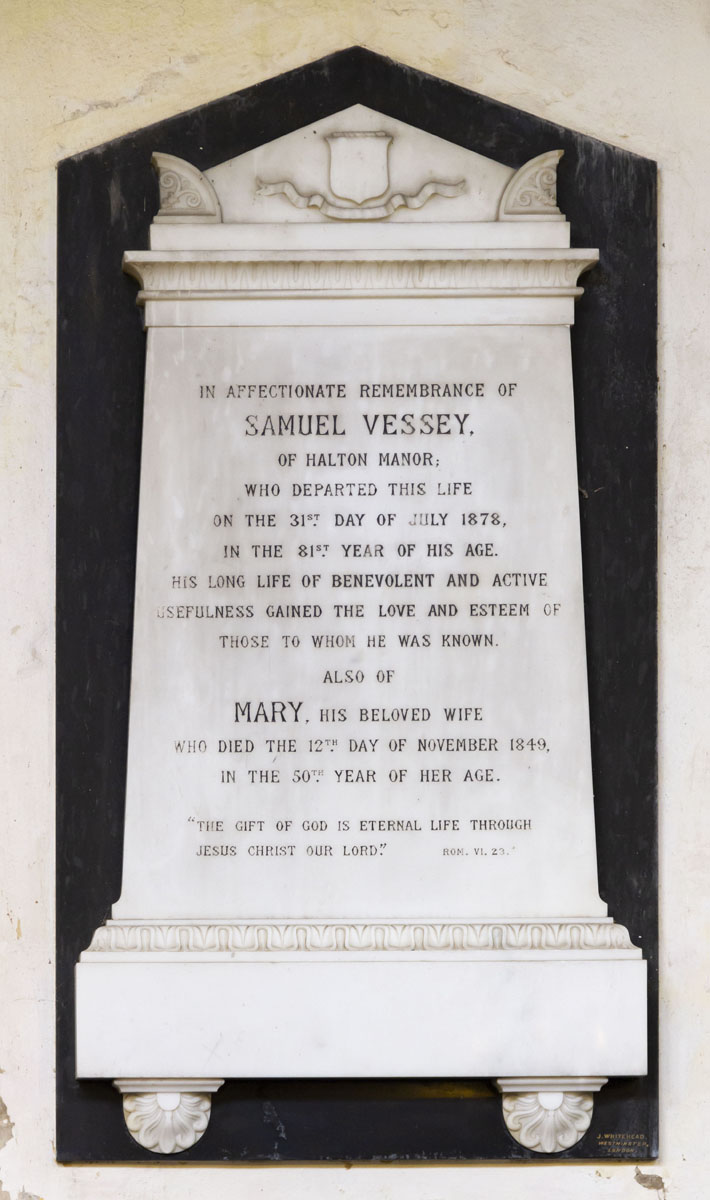There are various wall monuments and plaques along the north aisle commemorating families with historic connections with the church, including the Vessey, Richardson, Booth and Disbrowe families.