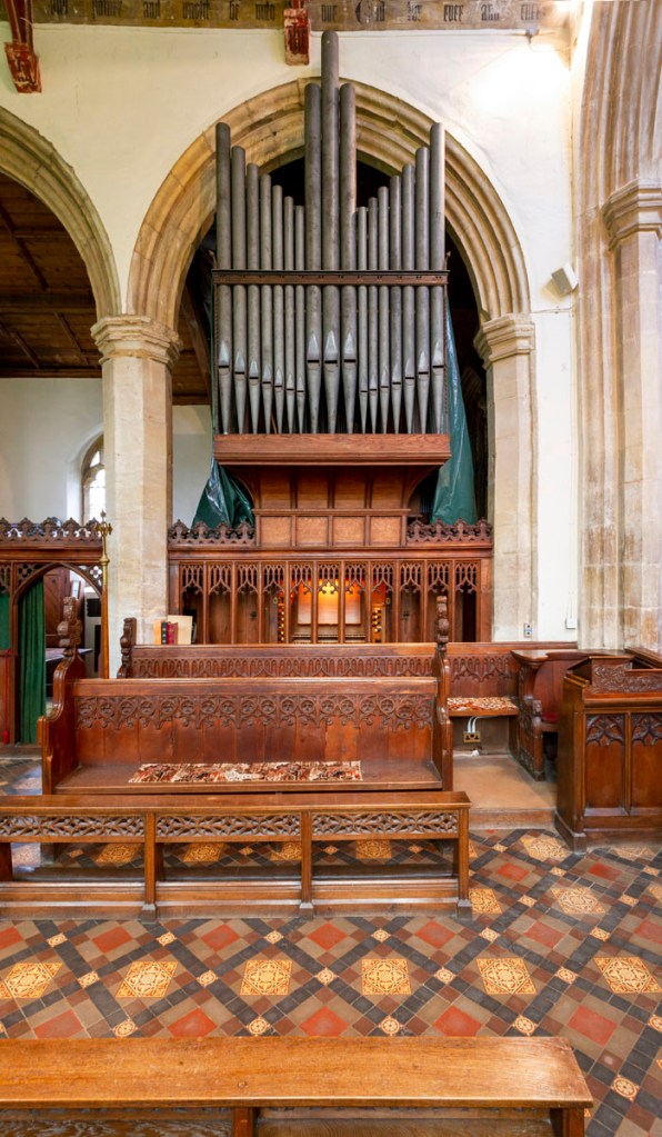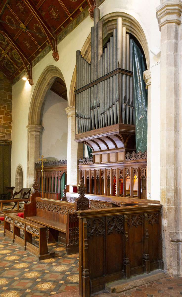 Before the new organ chamber was built in 1895 the singing was led by a barrel organ at the west end of the Nave near the font.