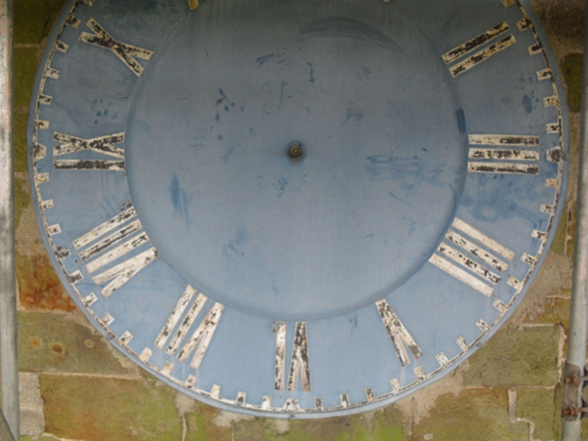 The dial, 6 feet in diameter, made from flat copper sheet had become badly worn and faded. The hands, made of wood had also lost their protective coating of paint and gold.