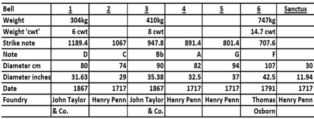 1717 The installation of 2 new bells, (the 2nd and 5th) to make the number up the current 6, and 2 new frames.