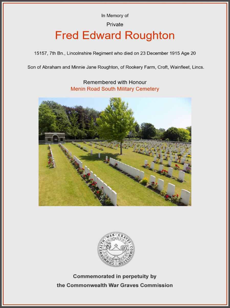 It is possible that Pte. Roughton was *‘concentrated’ to the Menin Road Cemetery.