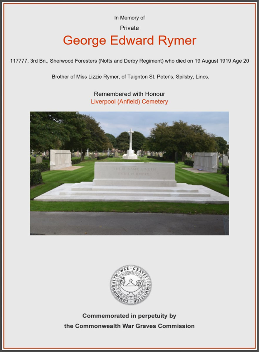 Buried 25th August 1919 in a military grave at Anfield cemetery, Liverpool.